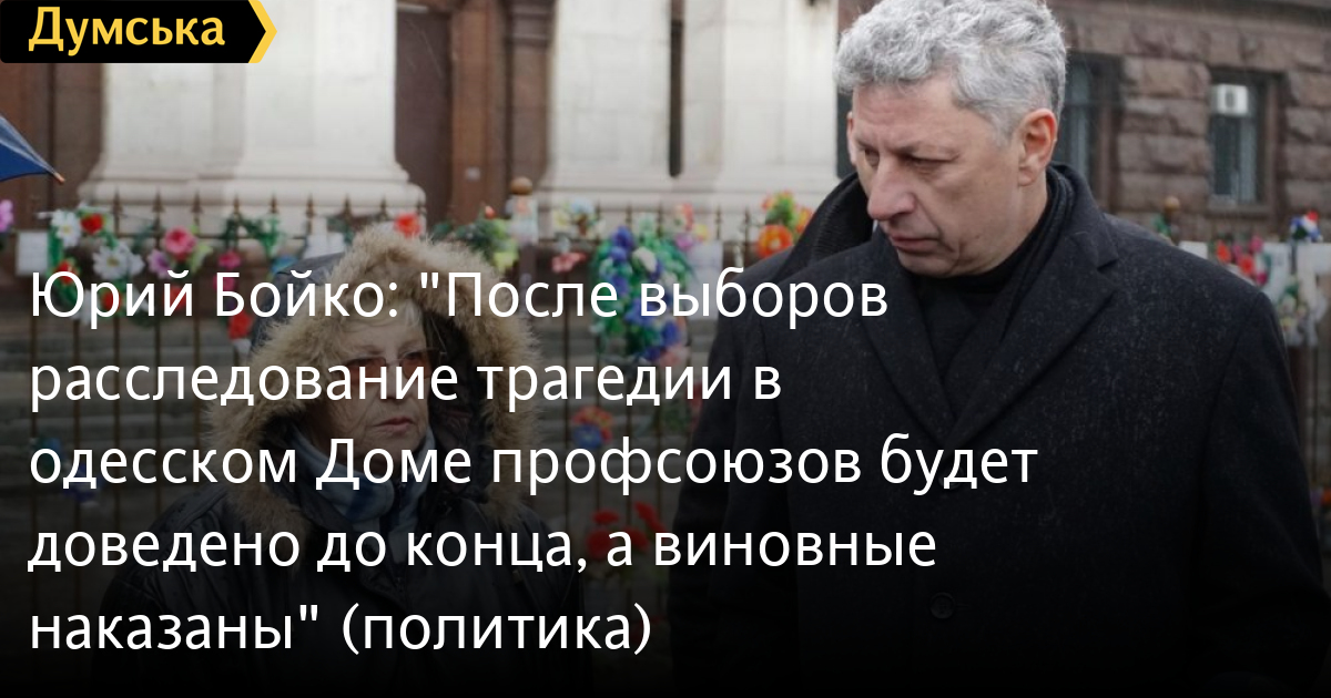 «Подобные трагедии и преступления не имеют срока давности. Власть всячески тормозит расследование трагедии, потому что результаты могут оказаться очень неудобными для нее. Как бы она не покрывала тех, кто поджег Дом профсоюзов, кто добивал людей, которые пытались выбраться из горящего здания – мы доведем дело до конца. После нашей победы мы проведем справедливое расследование, и все виновные в гибели почти полсотни человек понесут наказание по всей строгости закона. Память погибших одесситов будет обязательно увековечена. Подобные трагедии не должны повториться», — подчеркнул Юрий Бойко.