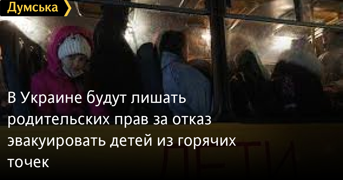 В Україні позбавлятимуть батьківських прав за відмову евакуювати дітей з гарячих точокСім’ї, а також патронатні вихователі та дитячі будинки, які виховують прийомних дітей-сиріт чи позбавлених батьківського піклування, можуть втратити право опікувати їх, якщо наражають своїх вихованців на великий ризик та відмовляються від обов’язкової евакуації. Відповідну постанову, винесену Мінсоцполітики, прийняв сьогодні Кабмін на своєму засіданні. «Долі цих дітей держава доручить більш відповідальним вихователям – вже у безпечних регіонах, куди малих евакуюють», — повідомили у Мінреінтеграції, яке виступило ініціатором постанови. Нагадаємо, обов’язкова евакуація з Донеччини наразі триває. З 2 серпня, коли вона розпочалася, до безпечних регіонів вже виїхало близько 10 тисяч мирних громадян. СМЕРТЬ РОСІЙСЬКИМ ОКУПАНТАМ! Помітили помилку? Виділяйте слова з помилкою та натискайте control-enter |