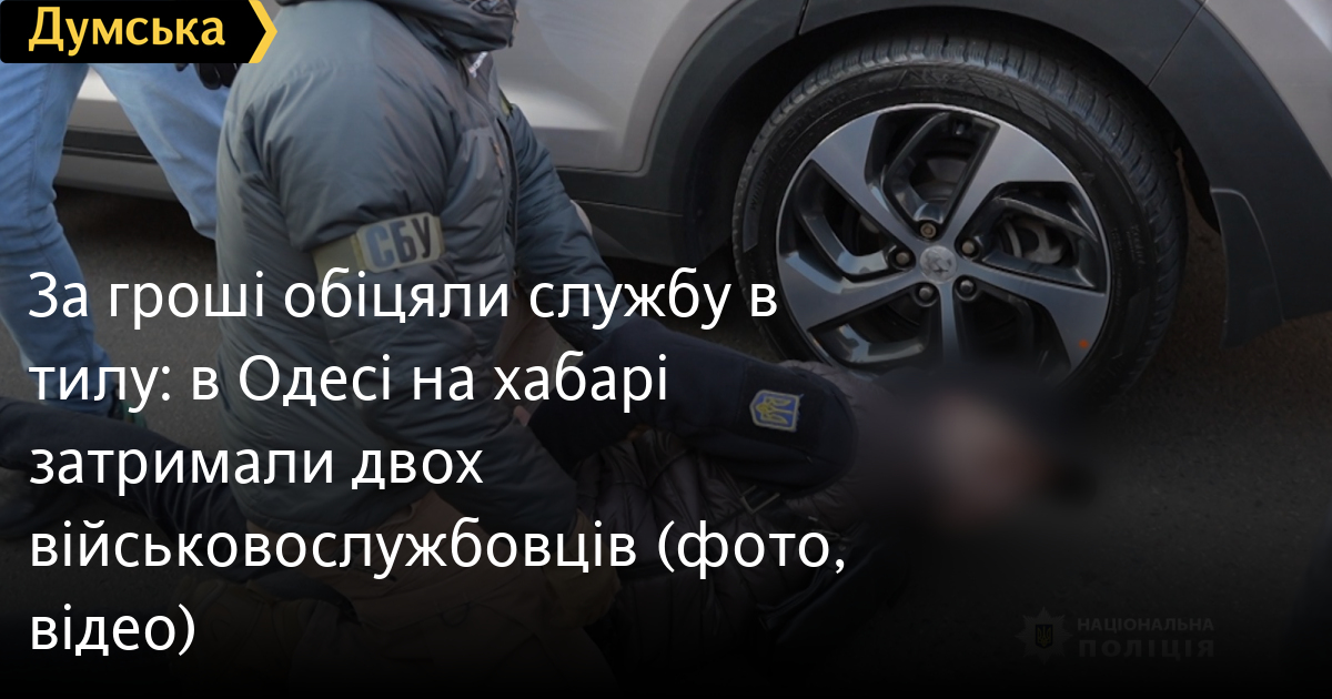 За гроші обіцяли службу в тилу: в Одесі на хабарі затримали двох військовослужбовців (фото, відео)Військовослужбовців 32 і 51 року, які вимагали гроші за переведення в тилові частини, затримали в Одесі. Як повідомили у пресслужбі поліції області, вони запропонували військовому, який готувався до проходження військово-лікарської комісії, допомогти у визнанні його непридатним або обмежено придатним до служби з подальшим переведенням у тилову частину. За свої послуги зловмисники зажадали чотири тисячі доларів, а в разі відмови платити, погрожували несприятливим рішенням ВЛК. Крім цього, правоохоронці з'ясували, що молодший також вимагав три тисячі доларів у дружини іншого військового за переведення в тил. Він залякував жінку, що якщо вона не заплатить, чоловіка відправлять на нуль. Здирників затримали після того, як вони отримали гроші від жінки і половину суми від чоловіка. Їм повідомили про підозру в одержанні неправомірної вигоди. Тепер військовослужбовцям загрожує до восьми років позбавлення волі з конфіскацією майна. СМЕРТЬ РОСІЙСЬКИМ ОКУПАНТАМ! Помітили помилку? Виділяйте слова з помилкою та натискайте control-enter Новини по цій темі: 15 липня 2025: Вимагала 400 євро за підробку документів для пенсії: в Одеській області чиновниця попалася на хабарі (фото, відео) 27 червня 2025: За 40 тис. грн хотів купити секретні розробки: в Одесі затримали співробітника приватної фірми 6 червня 2025: Вимагав три тисячі доларів за довідку про інвалідність: в Одесі затримали головлікаря лікарні (фото) 8 травня 2025: Обіцяли оформити програмістом в комунальне підприємство: в Одеській області викрили схему ухилення від армії |