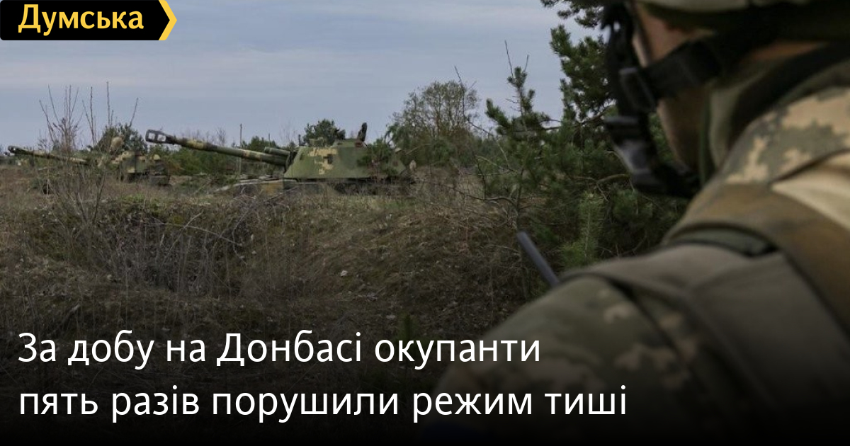 Збройні формування Російської Федерації за минулу добу п’ять разів порушили режим припинення вогню в районі проведення операції Об’єднаних сил.