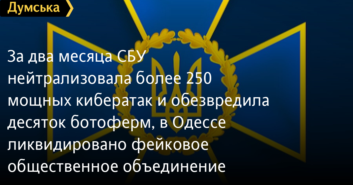 За два месяца СБУ нейтрализовала более 250 мощных кибератак и обезвредила десяток ботоферм, в Одессе нейтрализовано фейковое общественное объединение.