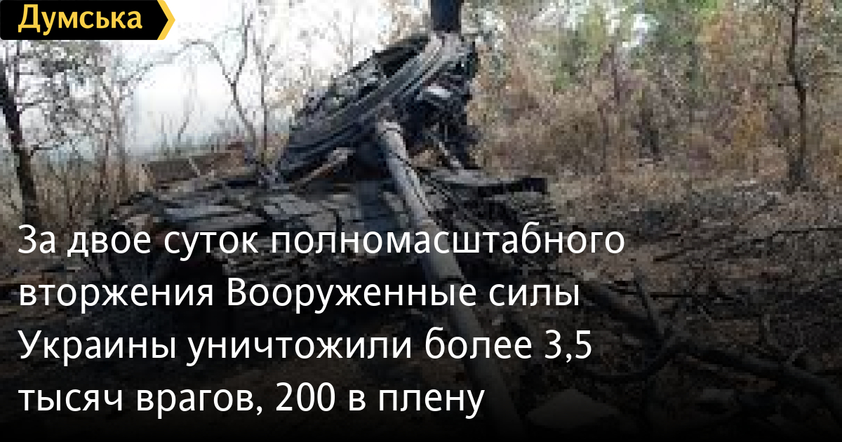 По состоянию на утро 26 февраля Вооруженные силы Украины уничтожили более трех с половиной тысяч российских военных, более двухсот взяты в плен.