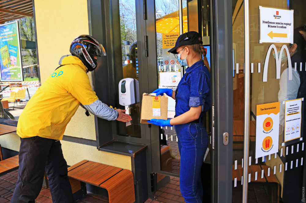 Заказы МакДеливери не выдаются курьерам с внешними признаками ОРВИ и без масок. Только бесконтактно и с соблюдением дистанции. Работники придерживаются безопасной дистанции с посетителями, а также выдают заказ, не касаясь их рук. Терминалы для банковских карточек протираются каждые 15 минут.