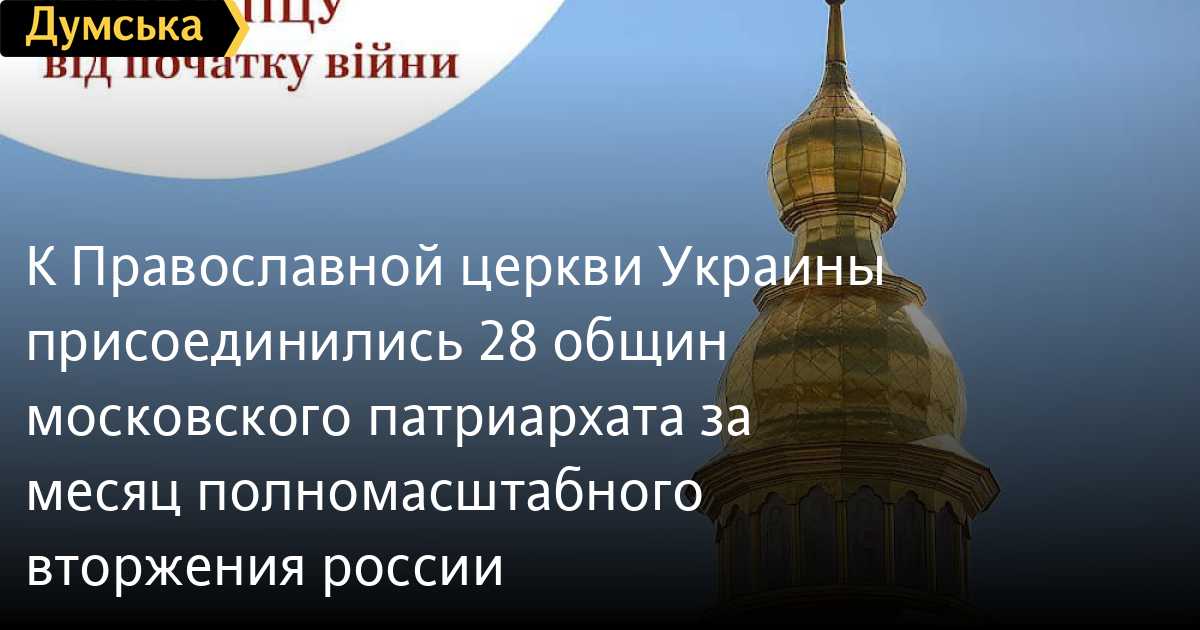 28 общин перешли в состав Православной церкви Украины из московского патриархата за месяц полномасштабной российской агрессии против нашей страны.