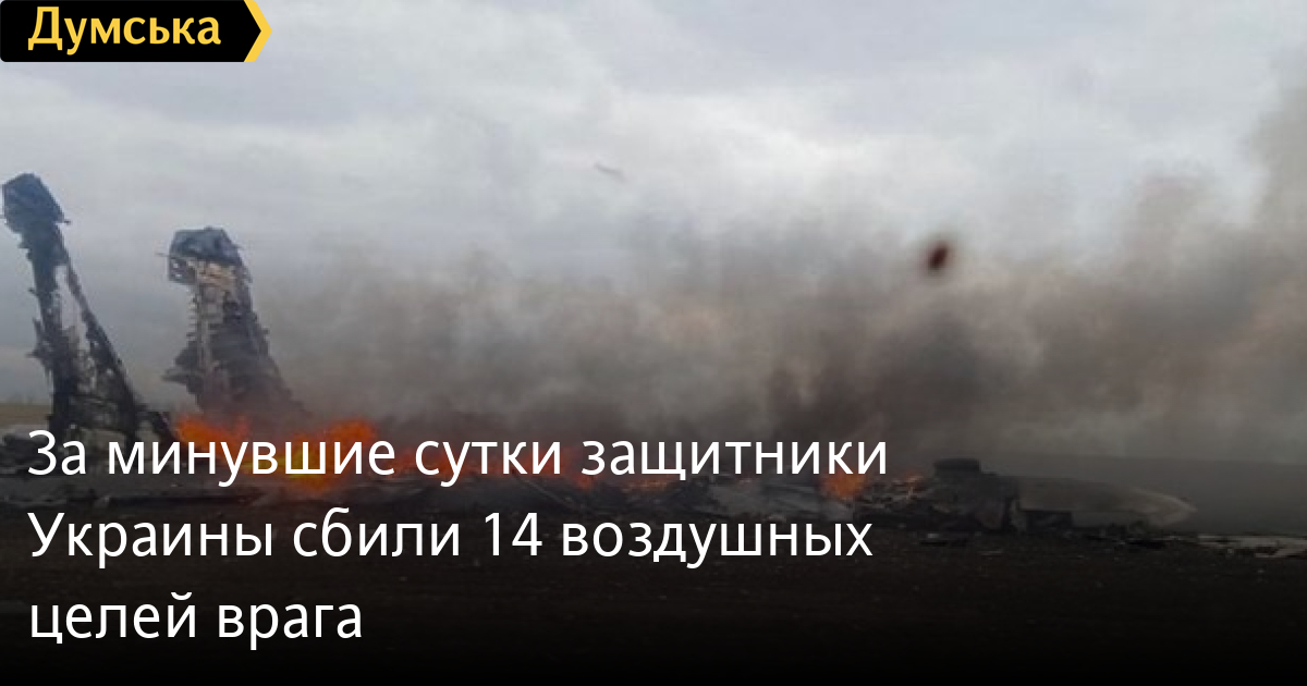 За сутки 17 марта Вооруженные силы Украины сбили 14 воздушных целей врага: семь самолетов, один вертолет, три беспилотника и три крылатые ракеты.