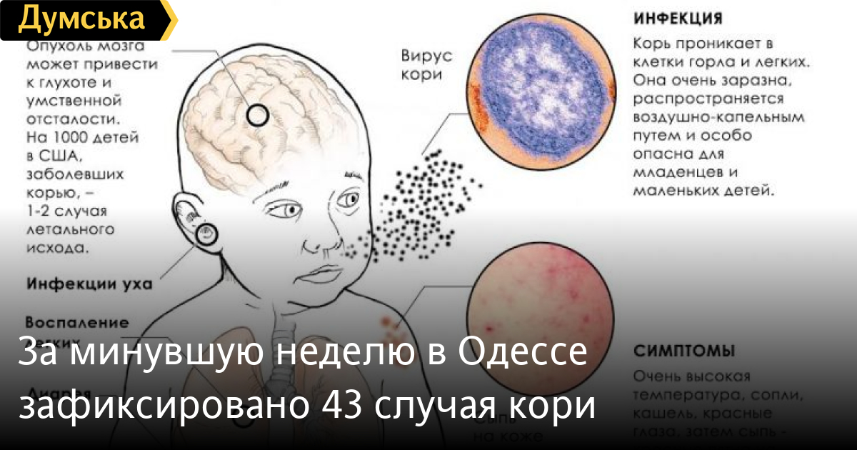 Уровень заболеваемости корью в Одессе остается высоким. За минувшую неделю заболели 43 человека — 24 ребенка и 19 взрослых.