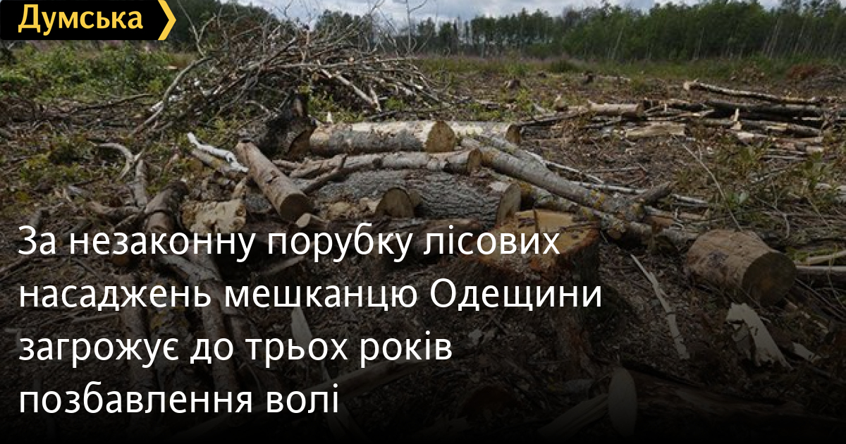 За незаконну порубку лісових насаджень мешканцю Одещини загрожує до трьох років позбавлення воліМешканцю Березівського району, якого викрили на незаконній порубці лісових насаджень, повідомили про підозру. Йому загрожує до трьох років позбавлення волі. Як розказали у пресслужбі поліції Одеської області, 35-річний чоловік спиляв та завантажив у свій автомобіль десять дерев черешні та акації. Дозволу на таку діяльність у нього не було. Правоохоронці спіймали зловмисника на гарячому. Згідно з висновками експертів, своїми діями він завдав державі збитків на понад 50 тисяч гривень. Спиляну деревину та бензопилу поліцейські вилучили, а автівку помістили на арештмайданчик. Фігуранту повідомили про підозру за ч.1 ст. 246 Кримінального кодексу України. Санкція статті передбачає покарання у вигляді штрафу від 1000 до 1500 неоподатковуваних мінімумів доходів громадян (17 000 – 25 500 гривень) або арешту на строк до шести місяців, або обмеження чи позбавлення волі на строк до трьох років. Помітили помилку? Виділяйте слова з помилкою та натискайте control-enter Новини по цій темі: 29 липня 2025: В Усатово Одеської області сталася перестрілка: поліція працює на місці (відео, оновлено) 28 липня 2025: П'яний на "Ягуарі" або гіпертонік? Звільнений топ-посадовець одеської поліції хоче повернутися на службу 19 червня 2025: Дівчинку, яку шукали сотні одеситів, знайшли вбитою: поліція працює з чоловіком, ймовірно причетним до загибелі 27 травня 2025: Увели гектар в університету: на Одещині засудили земельних аферистів, але без посадки і Хвоста |