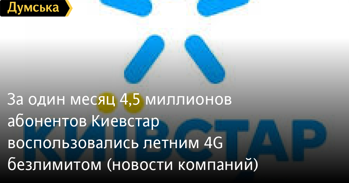 За один месяц 4,5 миллионов абонентов «Киевстар» воспользовались летним 4G безлимитом (новости компаний)В течение двух месяцев, до 31 июля 2019 года, для всех абонентов «Киевстар» мобильный интернет в сети 4G – безлимитный, без каких-либо настроек и дополнительной платы. Благодаря этому растет количество пользователей 4G и объем трафика в сети оператора. В компании отмечают, что в июне безлимитным 4G воспользовались уже 4,5 млн абонентов «Киевстар». Вместе они использовали почти 29 петабайт мобильного интернета в сети 4G. Это на 18% больше, чем было использовано в мае. «Интересно, что такого количества трафика хватило бы, например, для просмотра видео в высоком качестве примерно в течение 2270 лет, — говорят в «Киевстар». — Благодаря возможности пользоваться 4G безлимитно абоненты начали активно менять свои SIM-карты на новые с поддержкой 4G (так называемые USIM-карты)». Так, с начала акции 180 000 абонентов оператора перешли на USIM-карты. Получить новую карту можно бесплатно в любом из магазинов «Киевстар» или при помощи услуги «Самостоятельная замена SIM на 4G». Воспользоваться безлимитным скоростным 4G могут все абоненты «Киевстар», независимо от формы обслуживания или условий их тарифного плана. Все, что для этого надо — пользоваться 4G-смартфоном, иметь USIM-карту и быть в зоне покрытия 4G-сети. Сейчас сеть четвертого поколения оператора уже работает в 6540 больших и малых городах и поселках, где проживает 28,4 млн человек (68,3% населения Украины). Отметим, «Киевстар» более 20 лет работает в Украине, компания признана наибольшим плательщиком налогов отрасли связи и является одним из лучших работодателей Украины и социально ответственной компанией. СМЕРТЬ РОССИЙСКИМ ОККУПАНТАМ! Заметили ошибку? Выделяйте слова с ошибкой и нажимайте control-enter |