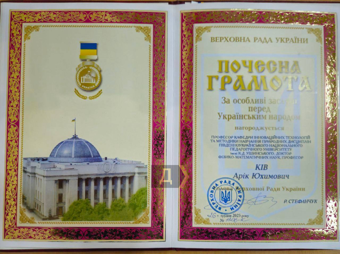 За особые заслуги перед народом: в Одессе наградили выдающегося педагога, который посвятил науке больше 70 летЗа особые заслуги перед украинским народом Верховная Рада наградила профессора кафедры инновационных технологий и методики обучения естественных дисциплин университета Ушинского Арнольда Юхимовича Кива. Награду ему вручили на сессии Одесского областного совета, сообщает корреспондент «Думской». Доктор физико-математических наук, профессор Арнольд Юхимович известен в Украине и за ее пределами как ученый физик-практик, который сочетает фундаментальные исследования с активной преподавательской работой. В университете отметили, что вручение государственной награды стало признанием многолетней работы профессора в сфере науки и образования. Арнольд Кив родился в Одессе в 1935 году. В 1959 году окончил университет Мечникова. В 1960-1972 годах был научным сотрудником Института ядерной физики и электроники в Узбекистане. В 1972-1983 годах — заведующий кафедрой физики Криворожского педагогического института. После этого вернулся в Одессу, где и начал карьеру в университете Ушинского. Ученый изучал радиационные эффекты в сульфиде калия, развил теорию подпороговых радиационных эффектов и радиационно-стимулированной диффузии в полупроводниках. Он доказал влияние низкоэнергетичной радиации на структурные нарушения в материалах электронной техники, определил механизмы старения материалов и разработал методы оценки ресурса работы приборов. Арнольд Кив — автор более 70 научных работ, член ученого совета Пражского и Рижского университетов, Соросовский профессор. Среди его предыдущих наград: звание «Заслуженный работник народного образования Украины», Почетная грамота Национальная академия наук Украины и нагрудный знак Министерства образования и науки Украины. СМЕРТЬ РОССИЙСКИМ ОККУПАНТАМ! Заметили ошибку? Выделяйте слова с ошибкой и нажимайте control-enter |