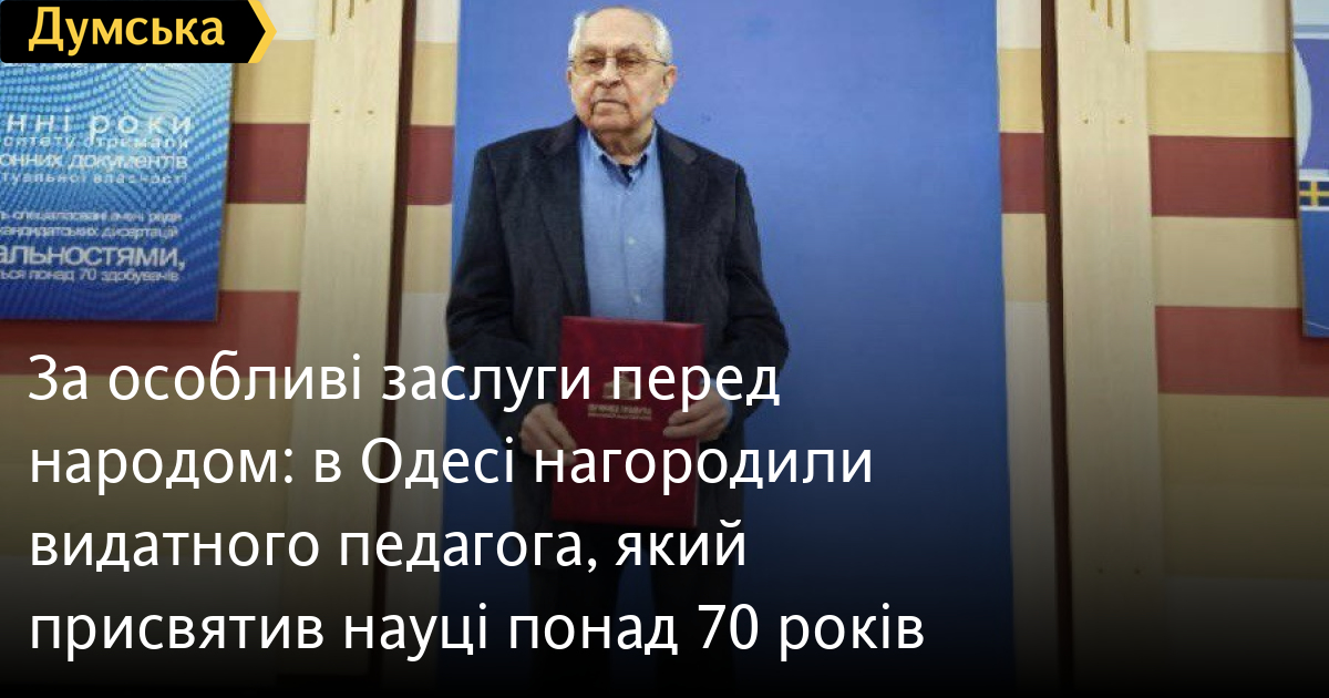 За особливі заслуги перед народом: в Одесі нагородили видатного педагога, який присвятив науці понад 70 роківЗа особливі заслуги перед українським народом Верховна Рада нагородила професора кафедри інноваційних технологій та методики навчання природничих дисциплін університету Ушинського Арнольда Юхимовича Ківа. Нагороду йому вручили на сесії Одеської обласної ради, повідомляє кореспондент «Думської». Доктор фізико-математичних наук, професор Арнольд Юхимович відомий в Україні та за її межами як вчений фізик-практик, який поєднує фундаментальні дослідження з активною викладацькою роботою. В університеті зазначили, що вручення державної нагороди стало визнанням багаторічної роботи професора у сфері науки та освіти. Арнольд Ків народився в Одесі в 1935 році. У 1959 році закінчив університет Мечникова. У 1960-1972 роках був науковим співробітником Інституту ядерної фізики та електроніки в Узбекистані. У 1972-1983 роках завідувач кафедри фізики Криворізького педагогічного інституту. Після цього повернувся до Одеси, де і почав кар'єру в університеті Ушинського. Вчений вивчав радіаційні ефекти в сульфіді калію, розвинув теорію підпорогових радіаційних ефектів і радіаційно-стимульованої дифузії в напівпровідниках. Він довів вплив низькоенергетичної радіації на структурні порушення в матеріалах електронної техніки, визначив механізми старіння матеріалів і розробив методи оцінки ресурсу роботи приладів. Арнольд Ків — автор понад 70 наукових праць, член вченої ради Празького та Ризького університетів, Соросівський професор. Серед його попередніх нагород: звання «Заслужений працівник народної освіти України», Почесна грамота Національної академії наук України та нагрудний знак Міністерства освіти і науки України. СМЕРТЬ РОСІЙСЬКИМ ОКУПАНТАМ! Помітили помилку? Виділяйте слова з помилкою та натискайте control-enter |