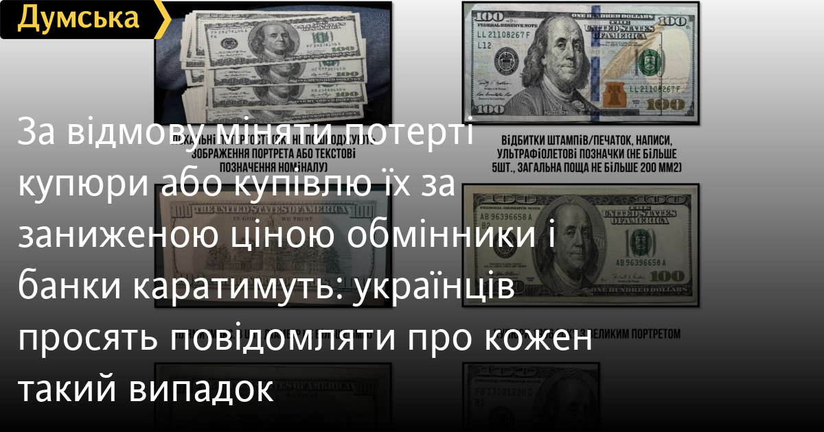 Національний банк України відреагував на скандальну поведінку багатьох валютних обмінників, які в умовах війни вирішили нажитися на простих громадянах. Останнім часом почастішали випадки, коли в людей відмовляються приймати купюри 1996 року випуску, або новіші, що мають навіть найменшу потертість чи плямочку, або приймають їх із додатковою комісією.