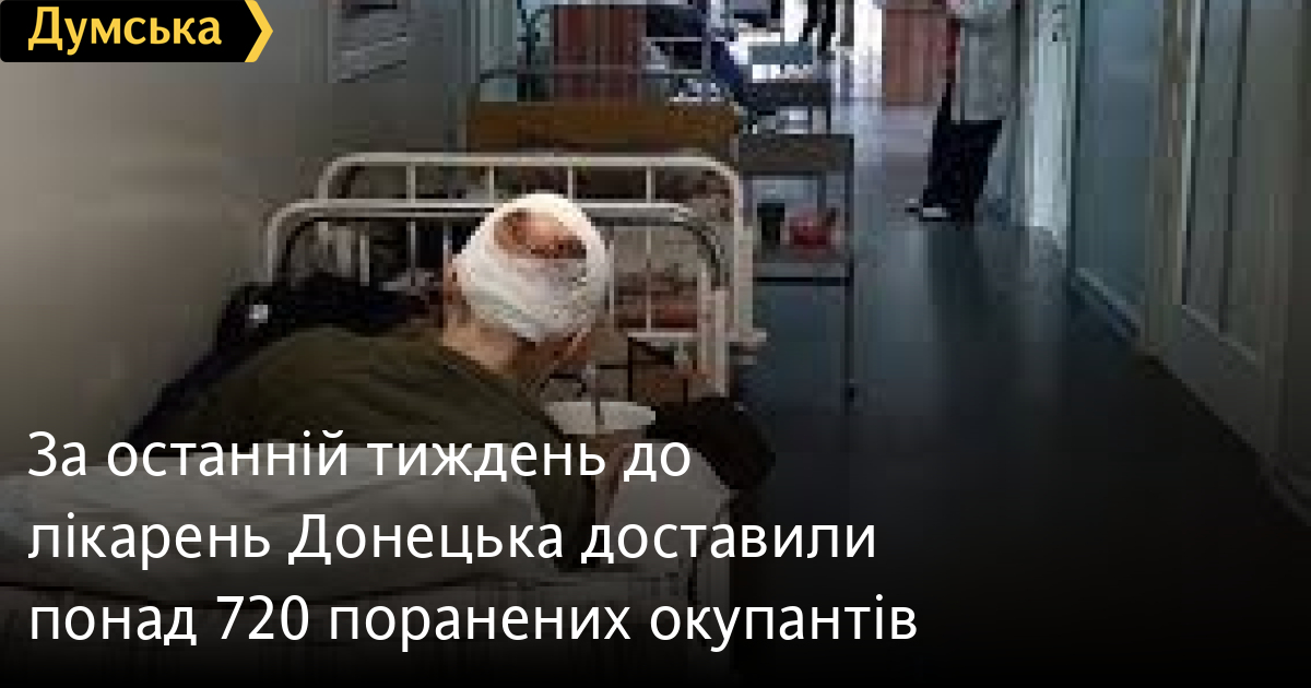 Понад 720 поранених військовослужбовців підрозділів російських окупаційних військ доставили до лікарень Донецька протягом минулого тижня.