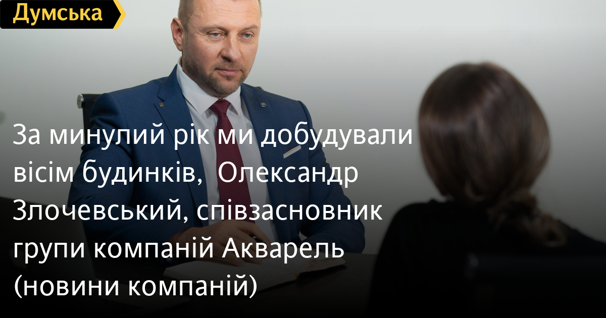 Будівельний ринок оживає після більш ніж річного застою. Чи зводять нове житло в умовах війни, хто його купує і що впливає на ціни? Відповіді на ці запитання «Думська» дізналася у співзасновника групи компаній «Акварель» Олександра Злочевського.