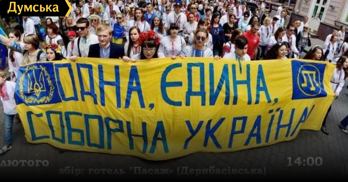 «За сохранение суверенитета Украины»: в Одессе ко Дню единения состоится патриотическое шествие (обновлено)Патриотическое шествие «За сохранение суверенитета Украины» состоится 16 февраля в Одессе. Как сообщает коммунальное учреждение «Одесский областной центр патриотического воспитания детей и молодежи», мероприятие начнется в 14:00 на Дерибасовской возле гостиницы «Пассаж». В шествии принимают участие инициативная группа граждан, общественные организации, образовательные учреждения города Одессы и все желающие одесситы и гости города. Организаторы призывают брать с собой флаги Украины, просят не забывать о карантинных ограничениях — масках и социальной дистанции. Напомним, 14 февраля президент Владимир Зеленский обратился к нации и огласил 16 февраля Днем единения, издав соответствующий указ «О неотложных мерах относительно консолидации украинского общества». В этот день во всех населенных пунктах Украины поднимают государственные флаги на домах и сооружениях, а в 10:00 исполняется гимн. Дипломатические учреждения Украины в государствах пребывания проводят имиджевые мероприятия, направленные на единение и поддержку Украины. ОБНОВЛЕНО в 14.10. Как рассказала «Думской» руководитель областного Центра патриотического воспитания и организации досуга детей и молодежи при Одесской ОГА Наталья Михайленко, в городе на этой неделе пройдут два марша за единую Украину. Первый стартует завтра, 16 февраля, в 14.00 от «Пассажа» и пройдет по центру города. В нем примут участие курсанты и студенты одесских вузов. Второй марш состоится в воскресенье, 20 февраля. Он стартует в полдень от Соборной площади и пройдет до Приморского бульвара к памятнику Дюку. Там активисты готовятся растянуть на Потемкинской лестнице стометровый флаг Украины. Организаторы приглашают одесситов на оба мероприятия. ОБНОВЛЕНО в 15:10. О проведении 20 февраля марша единения объявила также депутат Одесского облсовета от партии «Европейская Солидарность» Юлия Чухало в ходе внеочередного собрания. Депутат призвала всех присоединиться и продемонстрировать, что мы — украинский город и украинская область. СМЕРТЬ РОСІЙСЬКИМ ОКУПАНТАМ! Помітили помилку? Виділяйте слова з помилкою та натискайте control-enter |