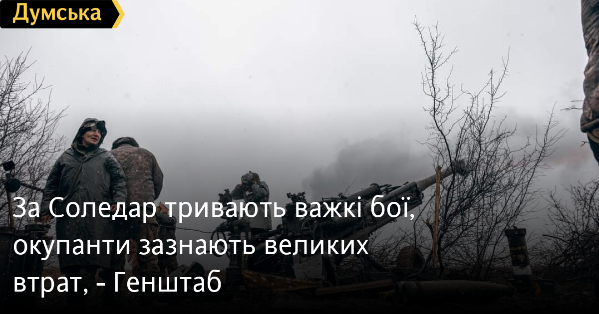 Як повідомляється в вечірньому зведенні Генштабу, тривають важкі бої за Соледар. Наші воїни цілодобово відбивають атаки ворога. Окупанти зазнають великих втрат.