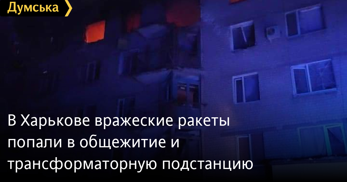 Враг продолжает обстрелы жилых кварталов Харькова и близлежащих населенных пунктов. Этой ночью вражеские ракеты попали в трансформаторную подстанцию ХФТИ и 5-этажное общежитие.