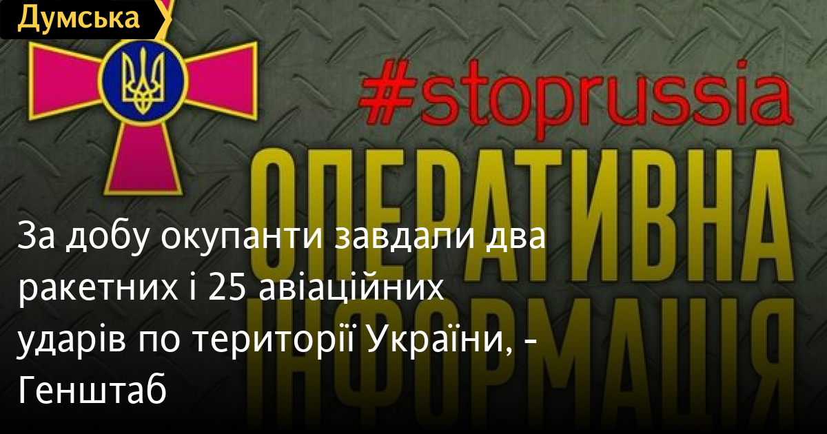 Два ракетних, 25 авіаційних ударів і одинадцять обстрілів з реактивних систем залпового вогню здійснили російські окупанти по військових та цивільних об’єктах України за минулу добу.