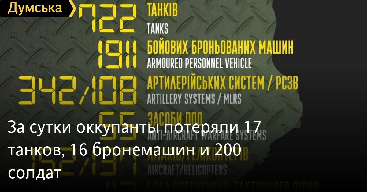 Вчера наши войска уничтожили или захватили, как трофей, 17 вражеских танков и 16 бронемашин, семь артиллерийских систем и 21 грузовик.