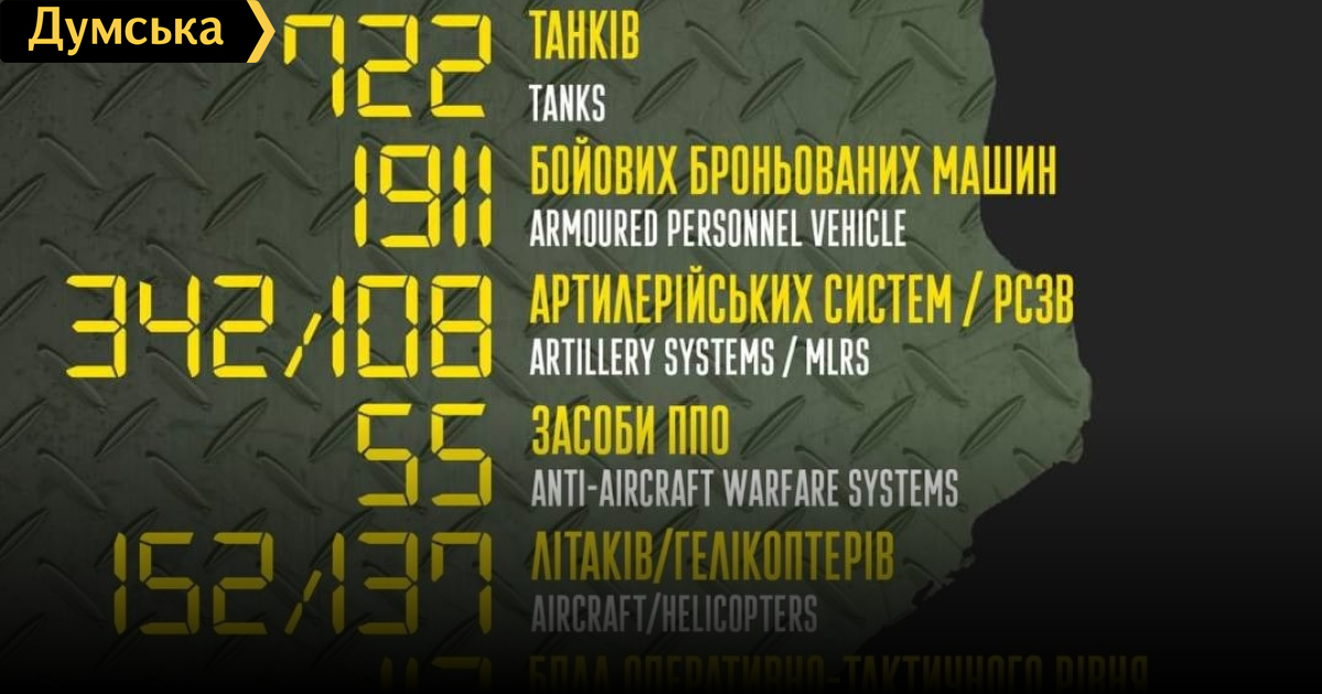 В ходе боев 9 апреля Силы обороны Украины уничтожили 200 российских солдат и офицеров. С 24 февраля армия оккупантов потеряла уже 19300 военнослужащих. Об этом сообщили в Генеральном штабе Вооруженных сил Украины. Вчера наши войска уничтожили или захватили, как трофей, 17 вражеских танков и 16 бронемашин, семь артиллерийских систем и 21 грузовик. За сутки сбиты один самолет и один вертолет рф. СМЕРТЬ РОСІЙСЬКИМ ОКУПАНТАМ! Помітили помилку? Виділяйте слова з помилкою та натискайте control-enter |