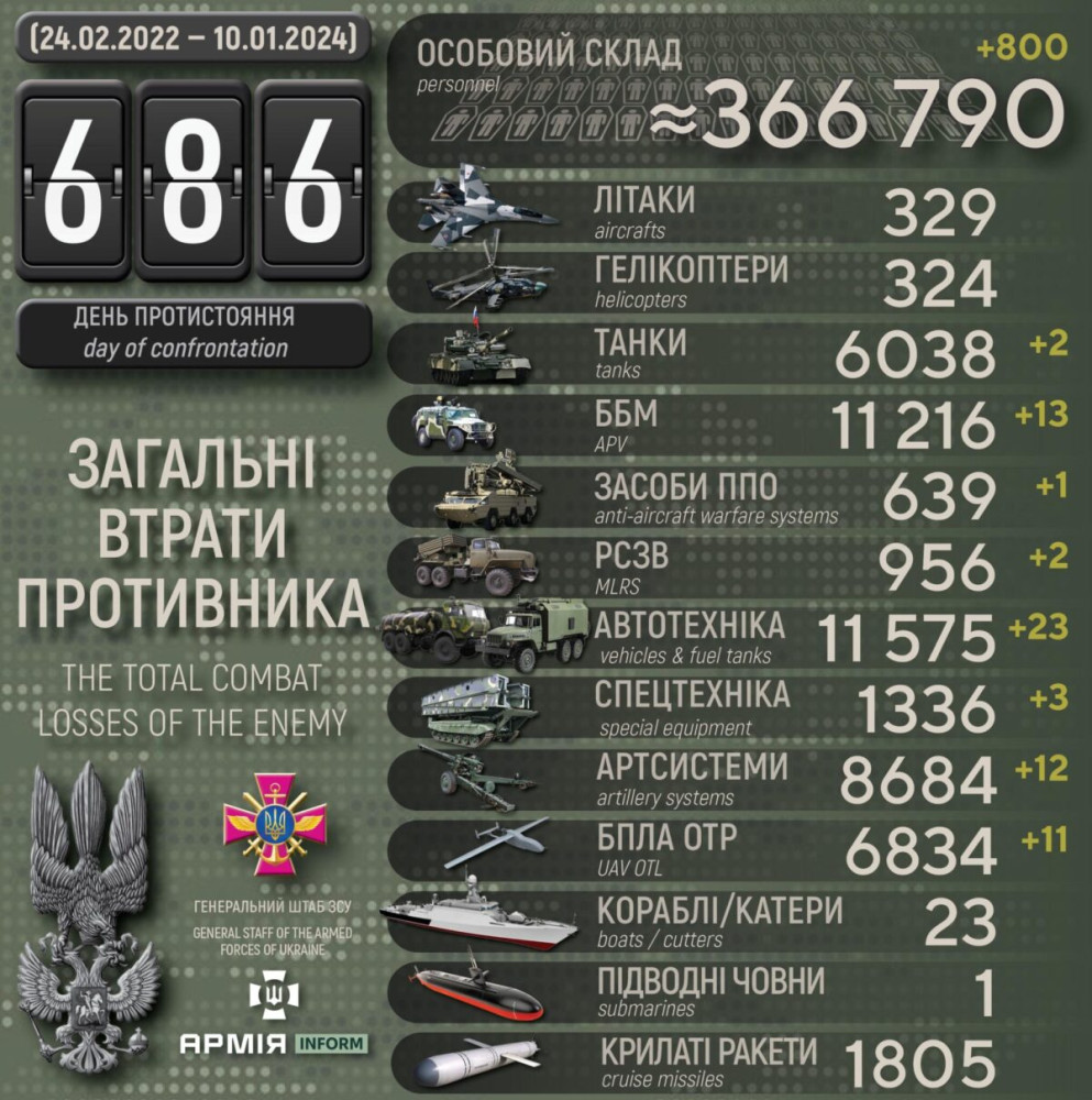 Усього з початку повномасштабного вторгнення втрати ворога склали: