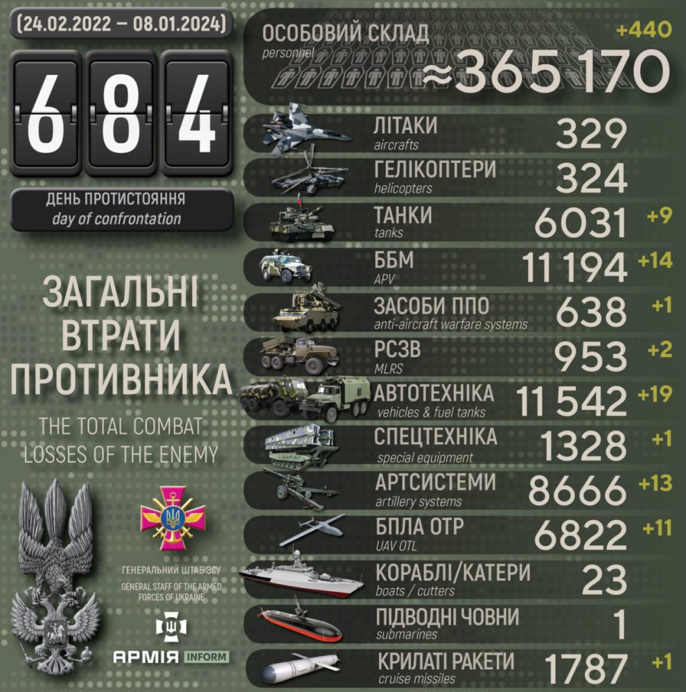 Усього з початку повномасштабного вторгнення втрати ворога склали: