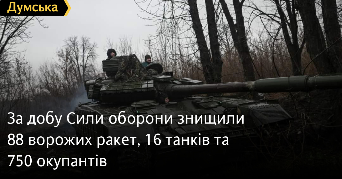 750 осіб, 88 крилатих ракет та 16 танків втратили російські окупанти минулої доби.