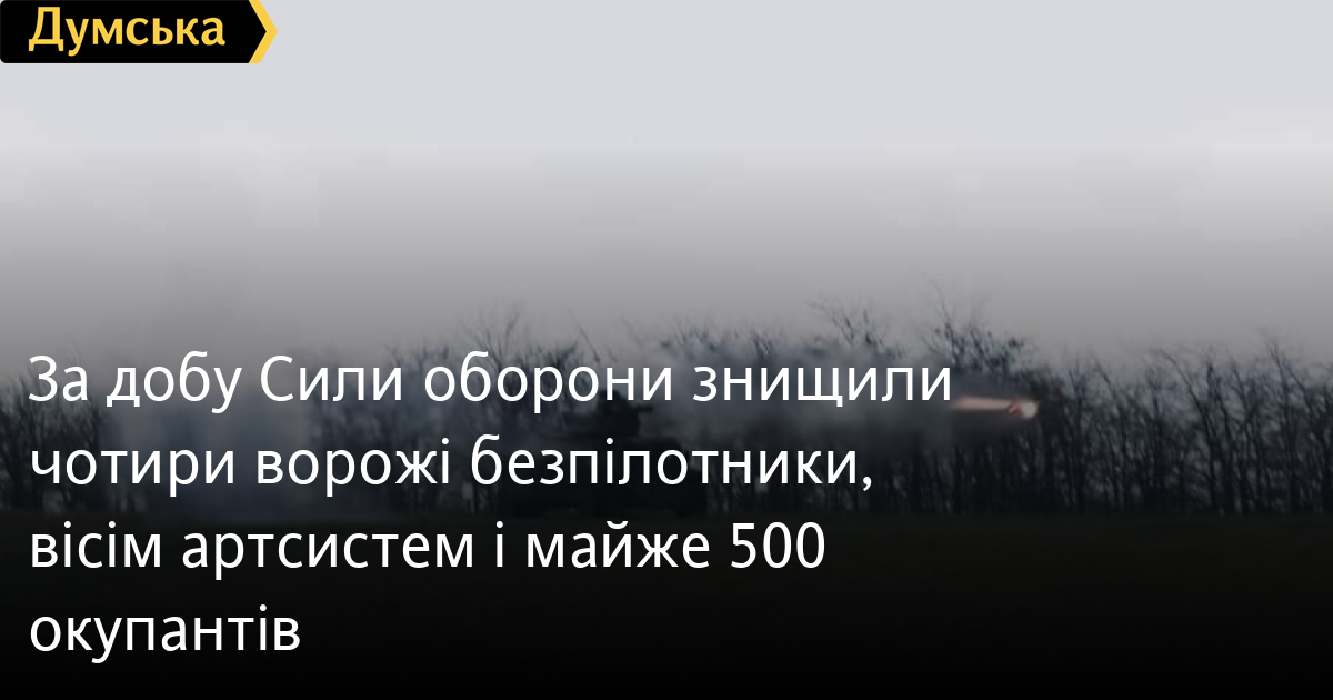 480 осіб, два танки і вісім артсистем втратили окупанти в Україні за минулу добу.