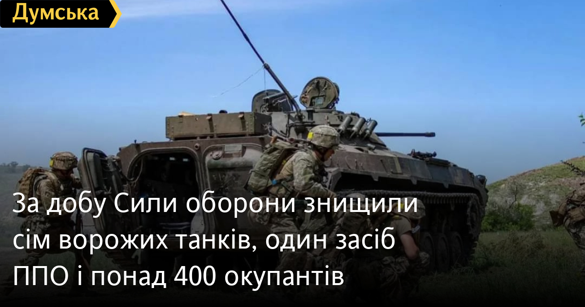 440 осіб, сім танків і п'ять артсистем втратили окупанти в Україні за минулу добу.