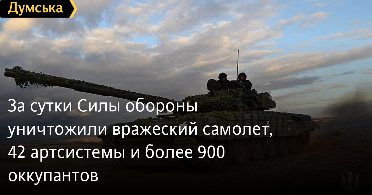 За добу Сили оборони знищили ворожий літак, 42 артсистеми та понад 900 окупантів930 осіб, один літак та дві крилаті ракети втратили російські окупанти минулої доби. Крім того, за даними Генерального штабу Збройних сил України, наші захисники також знищили 18 танків, 43 бойові броньовані машини, 42 артсистеми, чотири РСЗВ, три засоби ППО, 20 БПЛА оперативно-тактичного рівня, 34 одиниці автомобільної техніки і 13 одиниць спецтехніки. Усього з початку повномасштабного вторгнення втрати ворога склали: особового складу — 302 420 осіб; танків ‒ 5241 одиницю; бойових броньованих машин ‒ 9877 одиниць; артилерійських систем / artillery systems – 7292 одиниці; РСЗВ – 850 одиниць; засоби ППО ‒ 566 одиниць; літаків – 322 одиниці; гелікоптерів — 324 одиниці; БПЛА оперативно-тактичного рівня – 5488; крилаті ракети ‒ 1549; кораблі /катери ‒ 20 одиниць; підводні човни — 1 одиницю; автомобільної техніки та автоцистерн – 9658 одиниць; спеціальна техніка ‒ 1032. СМЕРТЬ РОСІЙСЬКИМ ОКУПАНТАМ! Помітили помилку? Виділяйте слова з помилкою та натискайте control-enter |
