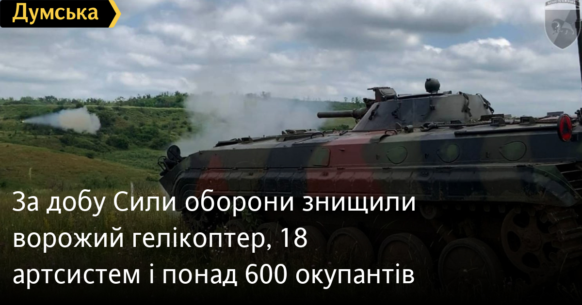 За добу Сили оборони знищили ворожий гелікоптер, 18 артсистем і понад 600 окупантів630 осіб, гелікоптер і п'ять танків втратили окупанти в Україні за минулу добу. Крім того, за даними Генерального штабу Збройних сил України, наші захисники також знищили шість бойових броньованих машин, 18 артсистем, шість засобів ППО, 12 БПЛА оперативно-тактичного рівня, 42 одиниці автомобільної техніки і чотири одиниці спецтехніки. Усього з початку повномасштабного вторгнення втрати ворога склали: особового складу — 220 450 осіб; танків ‒ 3989 одиниць; бойових броньованих машин — 7735 одиниць; артилерійських систем – 3865 одиниць; РСЗВ – 610 одиниць; засоби ППО ‒ 370 одиниць; літаків – 314 одиниць; гелікоптерів – 305 одиниць; БПЛА оперативно-тактичного рівня – 3383; крилаті ракети ‒ 1211; кораблі /катери ‒ 18 одиниць; автомобільної техніки та автоцистерн – 6613 одиниць; спеціальна техніка ‒ 526. СМЕРТЬ РОСІЙСЬКИМ ОКУПАНТАМ! Помітили помилку? Виділяйте слова з помилкою та натискайте control-enter |