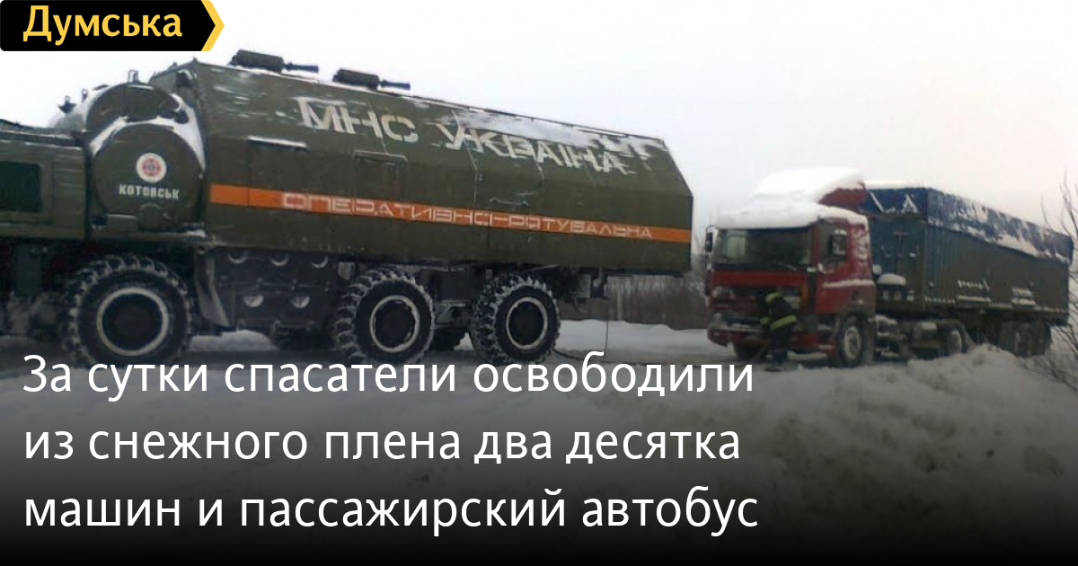 За сутки спасатели освободили из снежного плена два десятка машин и пассажирский автобусЗа минувшие сутки подразделения ГСЧС в Одесской области вытащили из снежных заносов 19 машин, среди которых четыре грузовика, микроавтобус и пассажирский автобус. В попавших в снежный плен автомобилях находилось 74 человека, в том числе один ребенок. По информации регионального управления ГСЧС, рейсовый автобус «Мерседес», который направлялся из Сергеевки в Кишинев, попал в заносы на участке дороги между Сергеевкой и селом Беленькое Белгород-Днестровского района вчера утром. В автобусе находились 30 граждан Молдовы. Там же в снежном плену оказалось еще 5 автомобилей. С помощью спасателей машины удалось освободить из заносов. Возле села Кубанка Коминтерновского района в снегу застряли два грузовых автомобиля «КамАЗ» и «КРАЗ», которые доставляли электроопоры в обесточенные населенные пункты. Еще один грузовик, а также микроавтобус и четыре легковых автомобиля спасатели откопали у села Приозерное Килийского района. В них находились 16 человек, в том числе один ребенок. СМЕРТЬ РОССИЙСКИМ ОККУПАНТАМ! Заметили ошибку? Выделяйте слова с ошибкой и нажимайте control-enter |