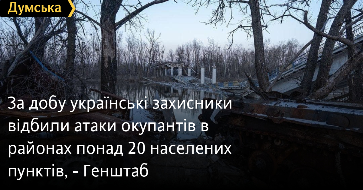 За минулу добу підрозділи Сил оборони відбили атаки окупантів в районах понад 20 населених пунктів, в тому числі: Білогорівка Луганської області; Верхньокам’янське, Спірне, Краснополівка, Сіль, Соледар, Білогорівка, Бахмут, Північне, Кам’янка, Водяне, Невельське, Мар’їнка, Побєда Донецької області.