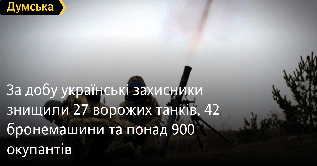 За добу українські захисники знищили 27 ворожих танків, 42 бронемашини та понад 900 окупантів920 осіб, 27 танків та 15 артсистем втратили російські окупанти минулої доби. Крім того, за даними Генерального штабу Збройних сил України, наші захисники також знищили 42 бойові броньовані машини, одну РСЗВ, один засіб ППО, 32 БПЛА оперативно-тактичного рівня, 40 одиниць автомобільної техніки та сім одиниць спецтехніки. Усього з початку повномасштабного вторгнення втрати ворога склали: особового складу — 356 670 осіб; танків ‒ 5940 одиниць; бойових броньованих машин ‒ 11015 одиниць; артилерійських систем – 8391 одиницю; РСЗВ – 935 одиниць; засоби ППО ‒ 617 одиниць; літаків – 329 одиниць; гелікоптерів – 324 одиниці; БПЛА оперативно-тактичного рівня – 6503; крилаті ракети ‒ 1620; кораблі /катери ‒ 23 одиниці; підводні човни — 1 одиницю; автомобільної техніки та автоцистерн – 11180 одиниць; спеціальна техніка ‒ 1247. СМЕРТЬ РОСІЙСЬКИМ ОКУПАНТАМ! Помітили помилку? Виділяйте слова з помилкою та натискайте control-enter |