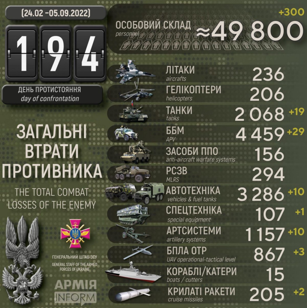 Усього з початку повномасштабного вторгнення втрати ворога склали: