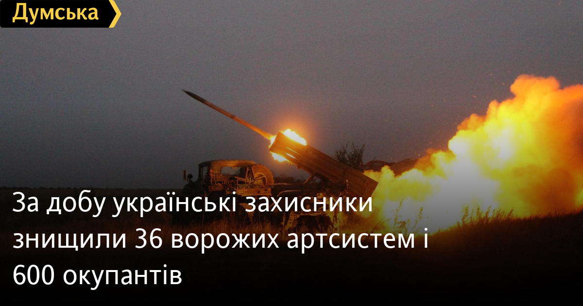 600 осіб, 15 танків і 36 артсистем втратили окупанти в Україні за минулу добу.
