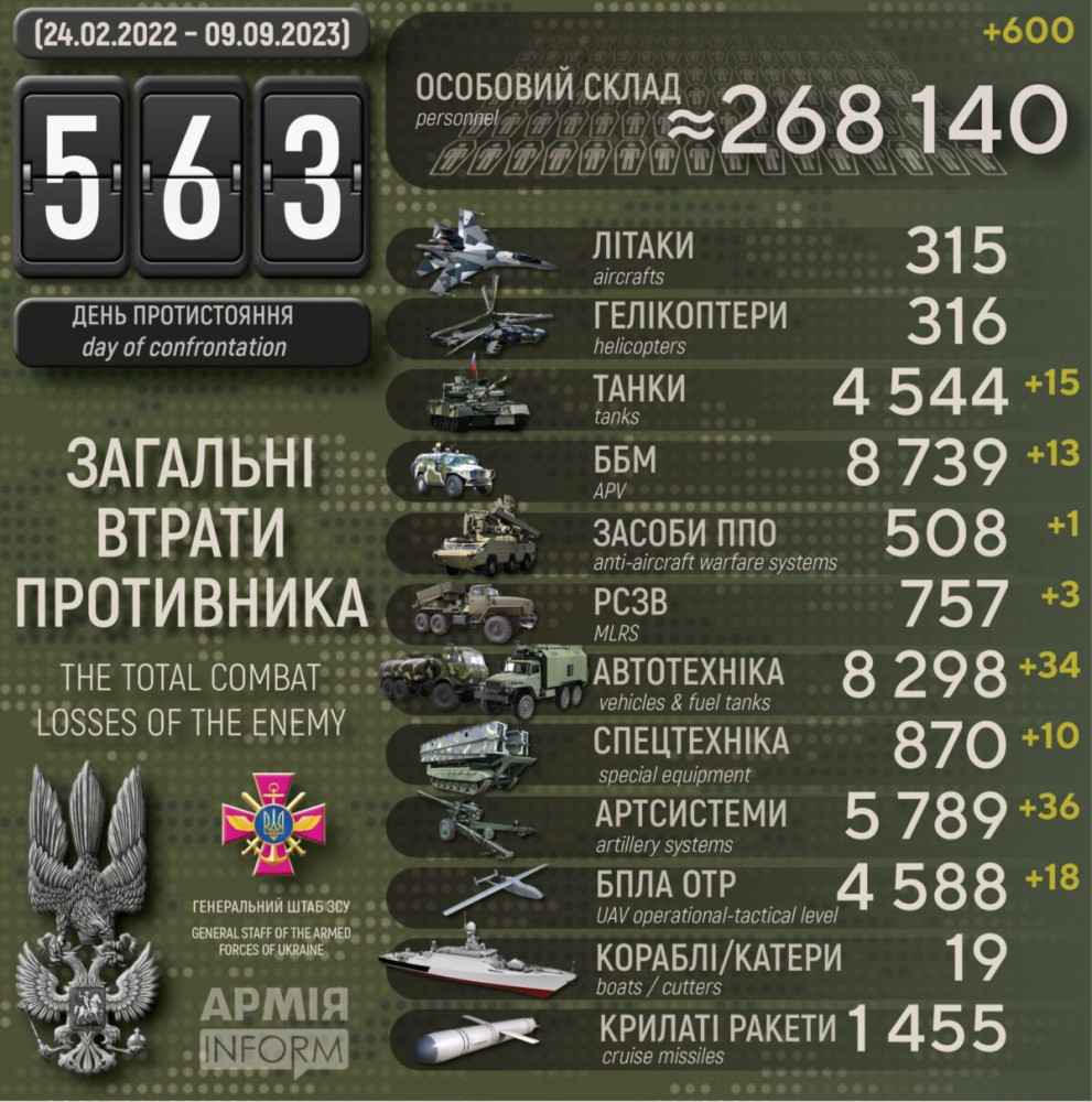 Усього з початку повномасштабного вторгнення втрати ворога склали: