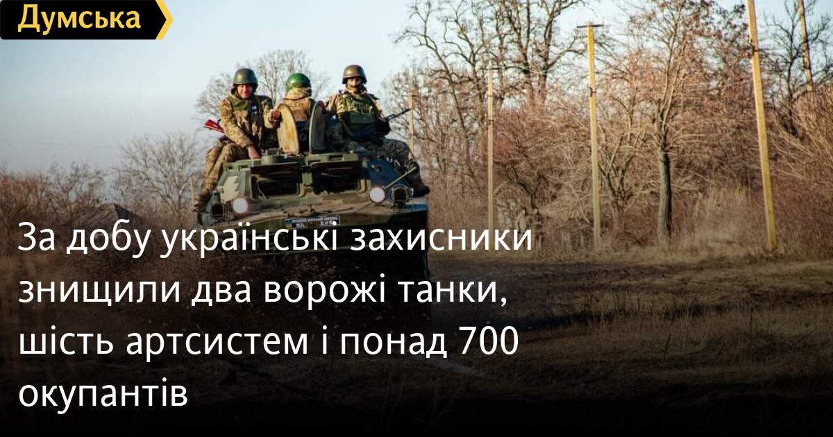 720 осіб, два танки і шість артсистем втратили окупанти в Україні за минулу добу.