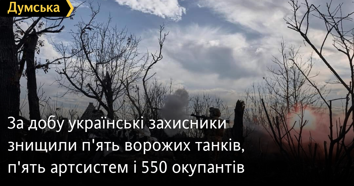 550 осіб, п'ять танки і п'ять артсистем втратили окупанти в Україні за минулу добу.