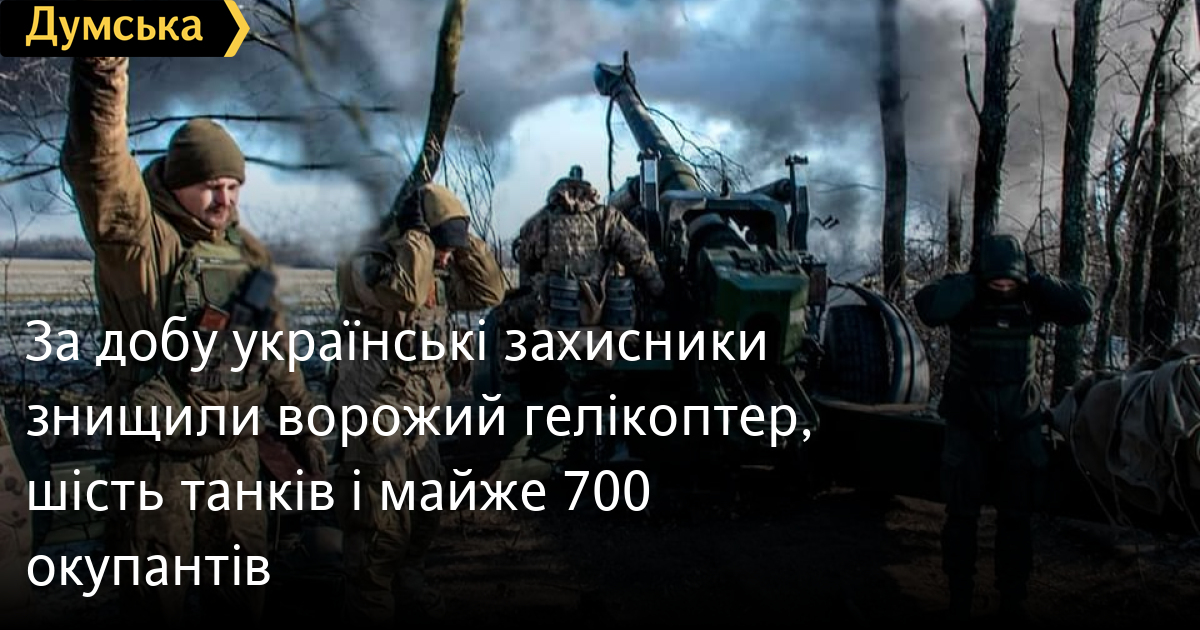690 осіб, один гелікоптер і шість танків втратили окупанти в Україні за минулу добу.