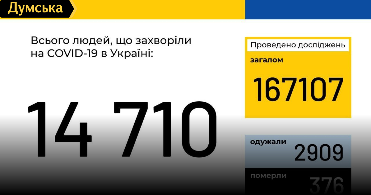 С начала пандемии в Украине от COVID-19 излечились 2909 пациентов, 376 человек умерло.