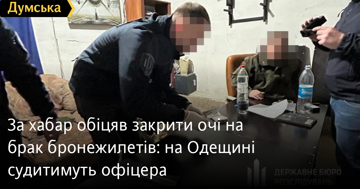 За хабар обіцяв закрити очі на брак бронежилетів: на Одещині судитимуть офіцераДержбюро розслідувань завершило досудове розслідування щодо начальника речової служби однієї з військових частин Одеської області, який вимагав у підлеглого хабар у розмірі 120 тисяч гривень. Нагадаємо, офіцера затримали в березні під час отримання 100 тисяч грн. У ДБР повідомили, що кваліфікували дії фігуранта за 368-ю статтею Кримінального кодексу України (одержання неправомірної вигоди службовою особою). Йому загрожує до десяти років в'язниці з конфіскацією майна. За даними слідства, начальник речової служби разом із заступником командира частини вимагали у військового хабар за підписання обхідного листка, а також обіцяли не ініціювати службову перевірку за фактом браку бронежилетів, щоб той міг перевестися в іншу частину. Помітили помилку? Виділяйте слова з помилкою та натискайте control-enter Новини по цій темі: 15 липня 2025: Вимагала 400 євро за підробку документів для пенсії: в Одеській області чиновниця попалася на хабарі (фото, відео) 27 червня 2025: За 40 тис. грн хотів купити секретні розробки: в Одесі затримали співробітника приватної фірми 6 червня 2025: Вимагав три тисячі доларів за довідку про інвалідність: в Одесі затримали головлікаря лікарні (фото) 8 травня 2025: Обіцяли оформити програмістом в комунальне підприємство: в Одеській області викрили схему ухилення від армії |