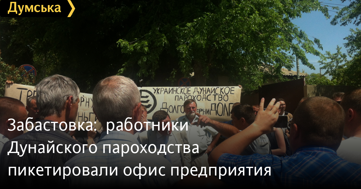 Около сотни работников базы технического обслуживания флота Украинского Дунайского пароходства 13 мая провели акцию протеста у главного офиса предприятия, что в городе Измаил.