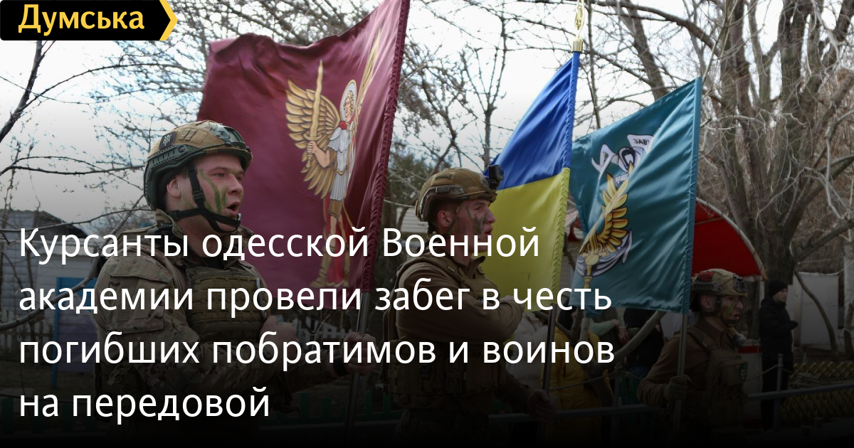 Курсанти одеської Військової академії провели забіг на честь загиблих побратимів та воїнів на передовійЗабіг у пам’ять про загиблих і на честь воїнів на передовій під назвою «Біжу за побратима» провели у неділю курсанти одеської Військової академії. Курсанти факультету Десантно-штурмових військ та морської піхоти подолали вісім кілометрів вздовж набережної. Наприкінці забігу випускники 2022 року передали майбутньому випуску 2023 символічний меч з написом «Завжди перші». СМЕРТЬ РОСІЙСЬКИМ ОКУПАНТАМ! Помітили помилку? Виділяйте слова з помилкою та натискайте control-enter |
