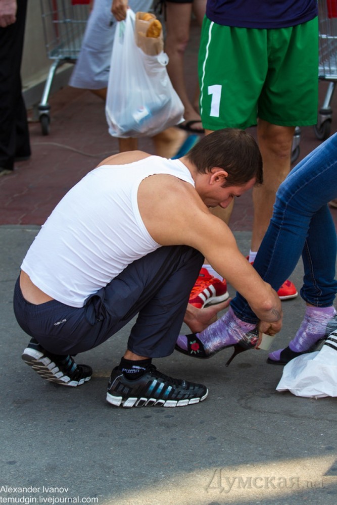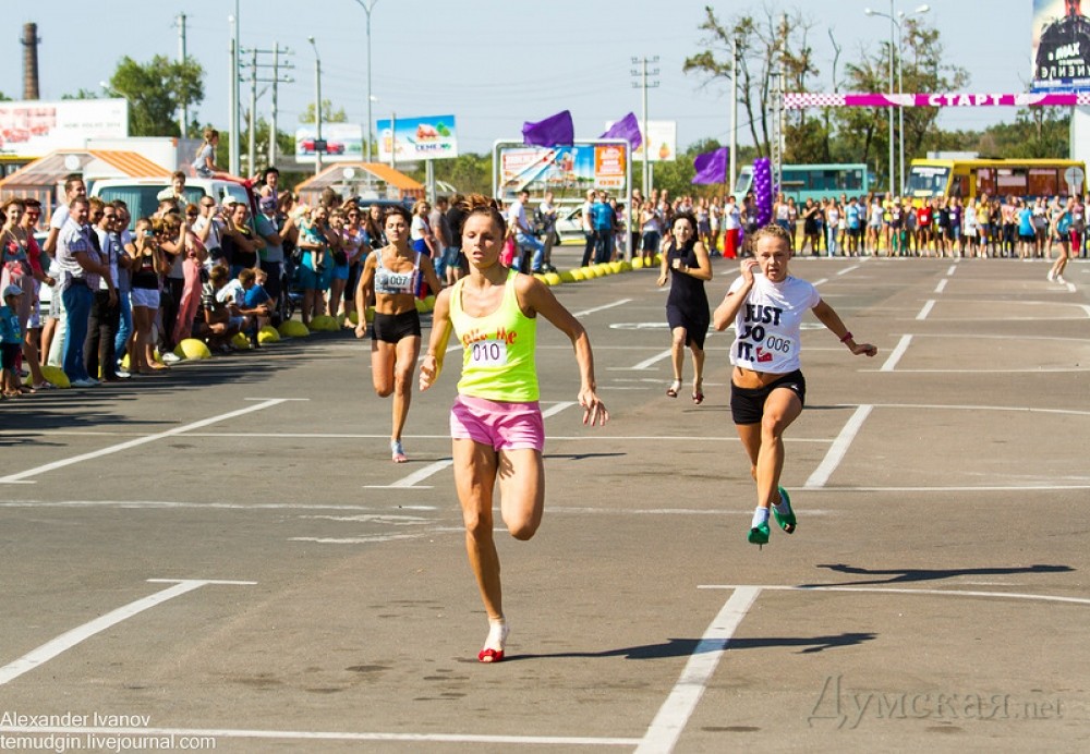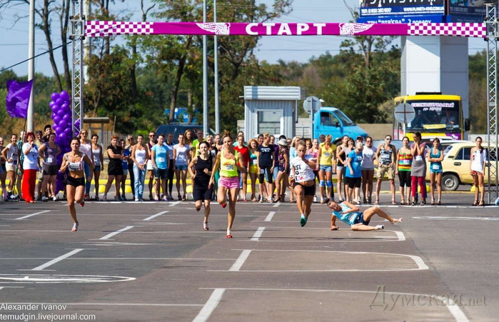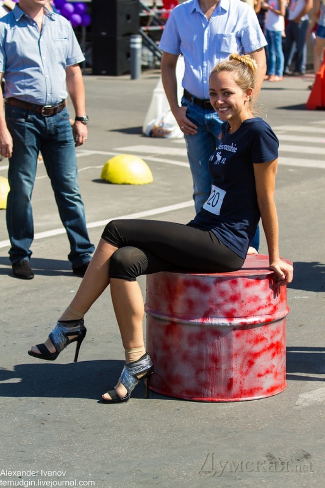 Второй раз в одном из торговых центров Одессы состоялся забег на шпильках. Как и обещали организаторы в прошлом году, мероприятие приобрело всеукраинский масштаб. Чтобы побороться за главный приз — автомобиль Geely — участницы съехались из разных городов, в частности, Донецка и Киева. Были даже представительницы других стран, например, России. Помня опыт прошлых соревнований, когда у многих подворачивались каблуки, девушки сразу приматывали обувь скотчем. Зрители заметили, что, несмотря на строгий контроль, не все соблюдали обязательное условие для участия в забеге — каблук высотой не менее девяти сантиметров. Некоторые после замеров умудрялись переобуться в туфли с меньшей высотой каблука. К всеобщему удивлению без скотча и махинаций дистанцию преодолела 68-летняя женщина. Хотя она не показала лучшее время, зрители по достоинству оценили ее смелость и отличную форму. Никто из мужчин в этом году не решился бегать на каблуках. Зато для них организовали отдельный конкурс, где требовалось поднять пудовую (16.38 кг) гирю максимальное количество раз. Источник – блог фотографа Александра Иванова СМЕРТЬ РОСІЙСЬКИМ ОКУПАНТАМ! Помітили помилку? Виділяйте слова з помилкою та натискайте control-enter |