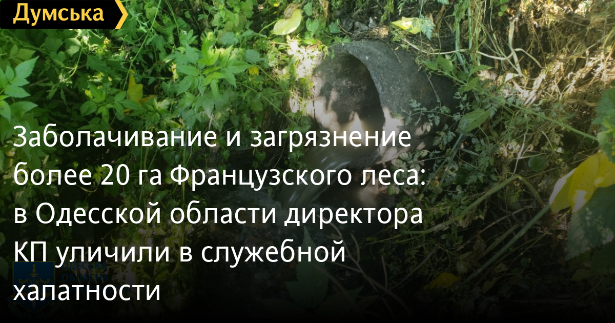 Заболочення та забруднення понад 20 га Французького лісу: на Одещині директора КП викрили у службовій недбалостіДиректор кодимського комунального підприємства допустив забруднення понад 20 га землі каналізаційними стоками. Своїми діями він завдав державі понад 700 тисяч гривень збитків, повідомили в поліції регіону. 64-річний чоловік керував КП в Кодимі з 2019 по 2021 рік. Він знав про пошкодження каналізації, але не вжив жодних заходів щодо проведення її капітального або поточного ремонту. За даними обласної прокуратури, з 2019 по 2021 роки керівник комунального підприємства з обслуговування водопровідної мережі й водовідведення знав про пошкодження каналізації та незаконно зливав стоки на землі лісового фонду – урочища Французький ліс Кодимського лісництва ДП «Ліси України». Забруднення ділянок призвело до погіршення родючості ґрунту, заболочення каналізаційними відходами понад 20 гектарів землі, масового висихання понад 200 дерев і нездатності їх до самовідновлення. Посадовцю повідомили про підозру у службовій недбалості, тобто неналежному виконанні службовою особою своїх службових обов'язків через несумлінне ставлення до них, що спричинило тяжкі наслідки державним інтересам (ч. 2 ст. 367 Кримінального кодексу України), а також у забрудненні та псуванні земель речовинами, відходами й іншими матеріалами, шкідливими для довкілля, унаслідок порушення спеціальних правил, що створило небезпеку для довкілля та тяжкі наслідки (ч. 2 ст. 239 ККУ). Наразі вирішується питання щодо обрання підозрюваному запобіжного заходу. Чоловіку загрожує до п’яти років за ґратами із трирічною забороною обіймати певні посади зі штрафом до 12 750 гривень. СМЕРТЬ РОСІЙСЬКИМ ОКУПАНТАМ! Помітили помилку? Виділяйте слова з помилкою та натискайте control-enter Новини по цій темі: 29 липня 2025: В Усатово Одеської області сталася перестрілка: поліція працює на місці (відео, оновлено) 28 липня 2025: П'яний на "Ягуарі" або гіпертонік? Звільнений топ-посадовець одеської поліції хоче повернутися на службу 19 червня 2025: Дівчинку, яку шукали сотні одеситів, знайшли вбитою: поліція працює з чоловіком, ймовірно причетним до загибелі 27 травня 2025: Увели гектар в університету: на Одещині засудили земельних аферистів, але без посадки і Хвоста |