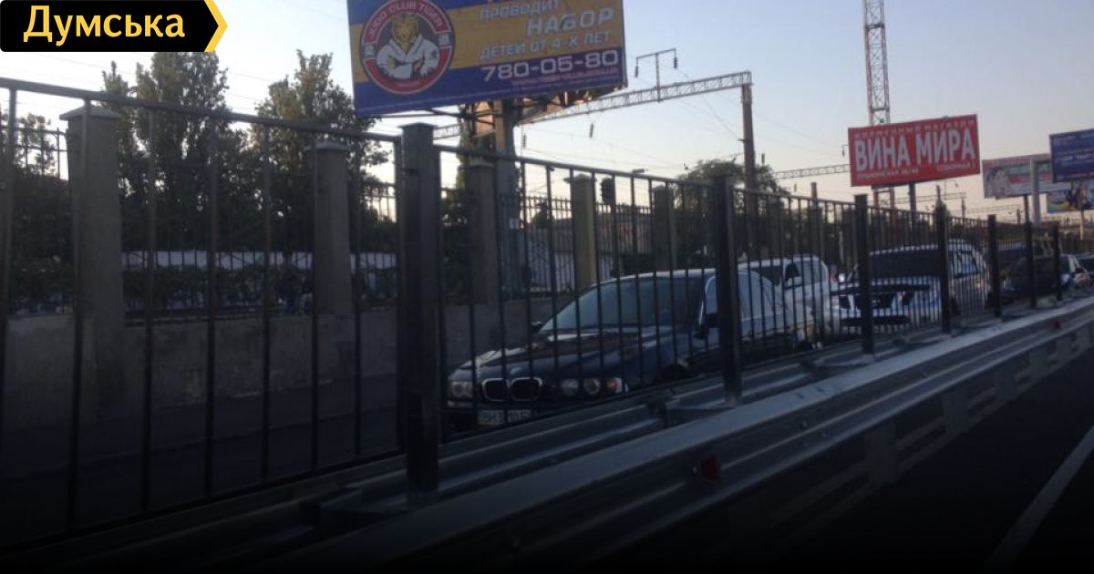 Отбойник на Среднефонтанской дополнили забором — чтобы пешеходы не шастали