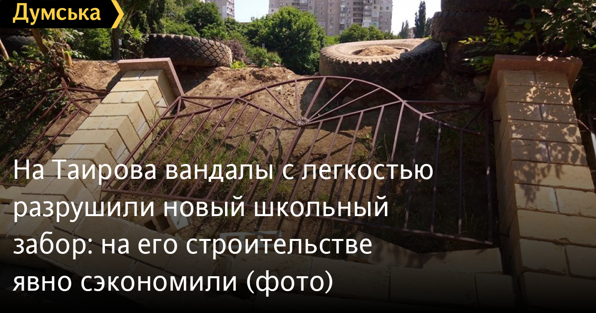 Директор муниципального департамента образования и науки Елена Буйневич сообщила «Думской», что разрушенный забор будет восстановлен, а поисками злоумышленников занимаются правоохранители — отдел образования Киевской райадминистрации написал заявление в полицию.
