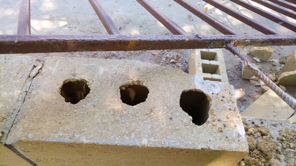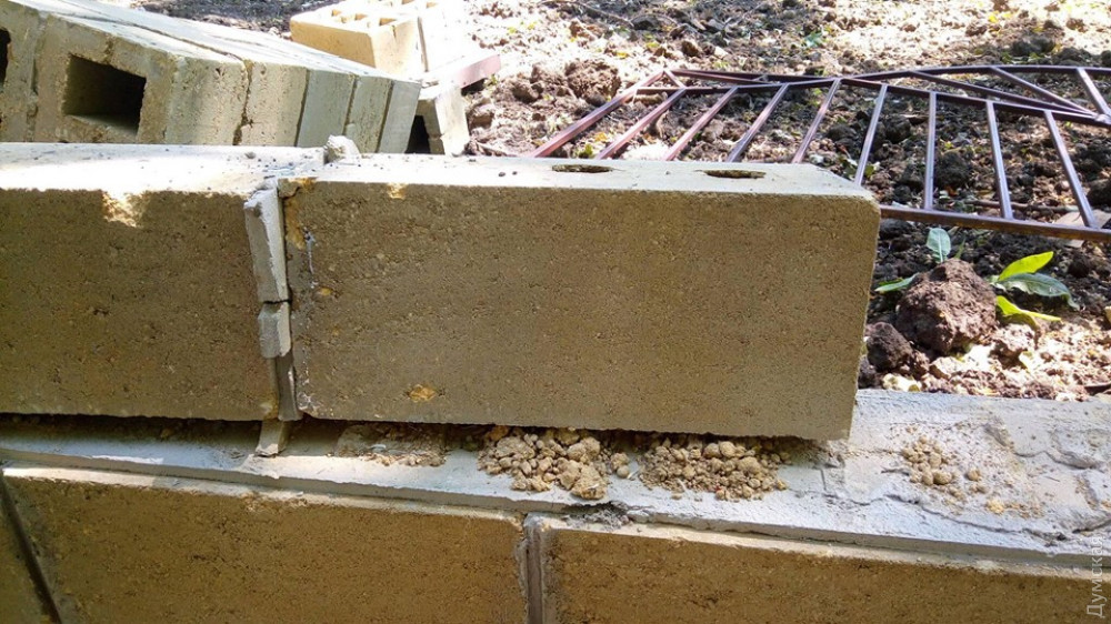Но почему каменный забор оказался таким хрупким? Даже непрофессионалу видно, что работа выполнена спустя рукава, на арматуре и цементе явно сэкономили.