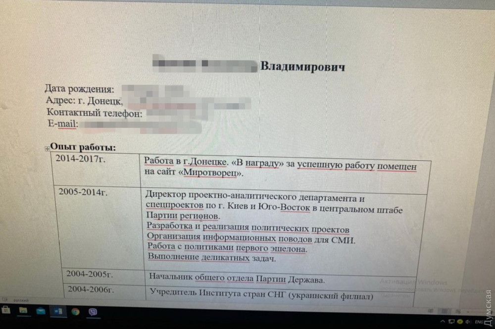 В Киеве злоумышленник сразу начал работать политтехнологом и пиарщиком пророссийских общественно-политических структур.