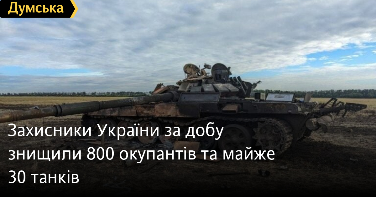 Захисники України за добу знищили 800 окупантів та майже 30 танківПонад 800 окупантів, 29 танків та 30 артсистем втратили російські загарбники минулої доби. За даними Генерального штабу Збройних сил України, наші захисники також знищили 18 бойових броньованих машин, одну РСЗВ, два засоби ППО, 17 дронів оперативно-тактичного рівня, 33 одиниці автомобільної та три одиниці спецтехніки. Всього з початку повномасштабного вторгнення Сили оборони знищили 297120 загарбників, 5141 танк, 9715 бойових броньованих машин, 30 артилерійських систем, 834 РСЗВ, 556 засобів ППО, 320 літаків, 324 гелікоптери, 5389 безпілотників оперативно-тактичного рівня, 1538 крилатих ракет, 20 кораблів та катерів, один підводний човен, 9507 одиниць автомобільної техніки та автоцистерн та 1010 одиниць спецтехніки. СМЕРТЬ РОСІЙСЬКИМ ОКУПАНТАМ! Помітили помилку? Виділяйте слова з помилкою та натискайте control-enter |